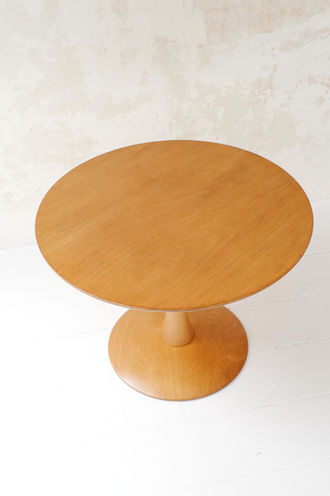 Belle table en hêtre massif et contreplaqué, modèle "Trissen" (bobine en Français), dessinée en 1962 par la designeuse danoise Nanna Ditzel.